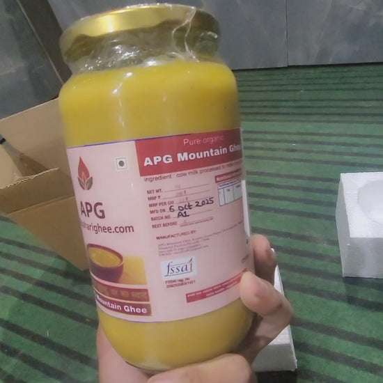 Crafted from the milk of grass-fed cows grazing in the pure mountain air, APG Mountain Ghee is hand-churned using the traditional bilona method. Rich in golden color, earthy aroma, and natural nutrition, it carries the healing essence of the Himalayas straight to your home.